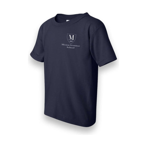 Navy t-shirt with logo, navy sweatpants or shorts, and sweatshirt printed with logo
