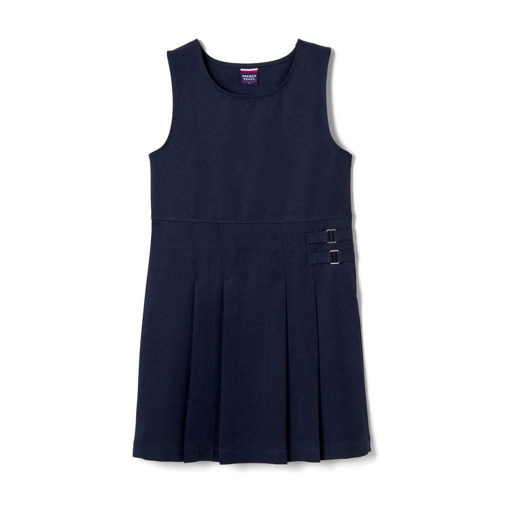 Step one: Pick out your top. Step two: Slip this jumper on over it. Step three: Look sharp! Made of durable poly material, this jumper dress is ready for the ins and outs (and ups and downs) of school and beyond.