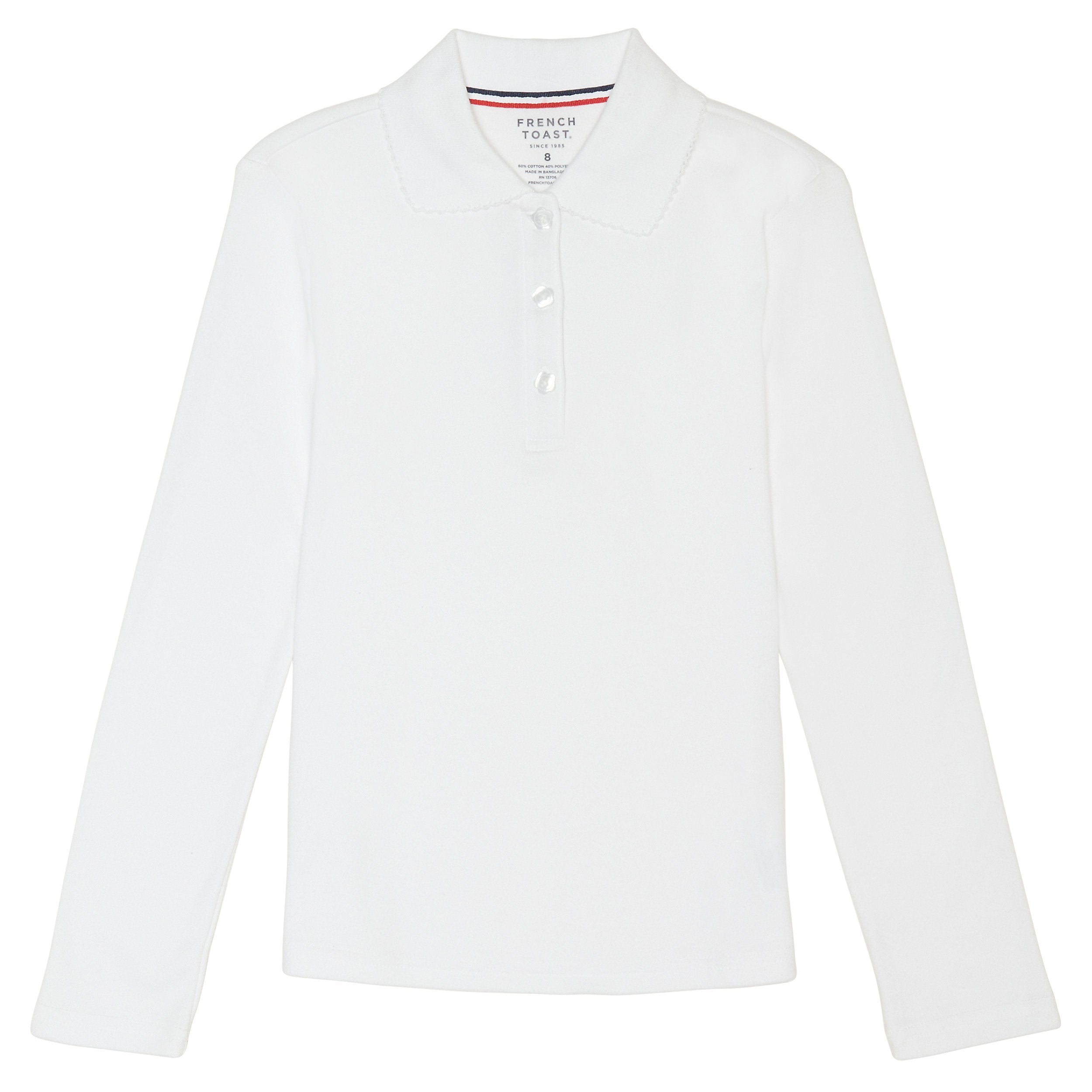 This super-soft, long sleeve polo features floral buttons and a feminine fit, as well as a flat knit collar with picot trim.