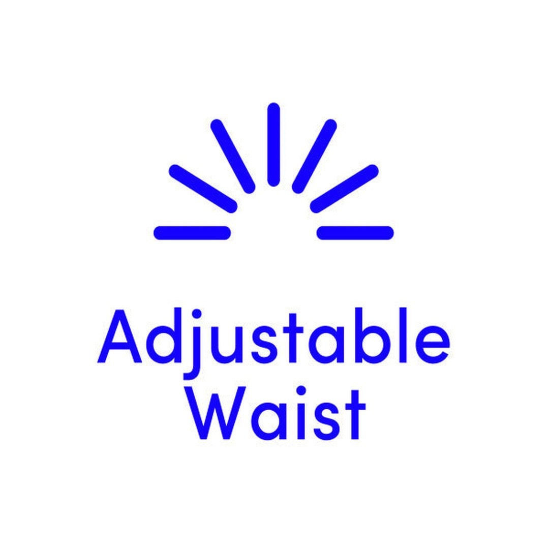 • Adjustable waist with decorative chalk button, hidden hook-and-eye closure and zipper