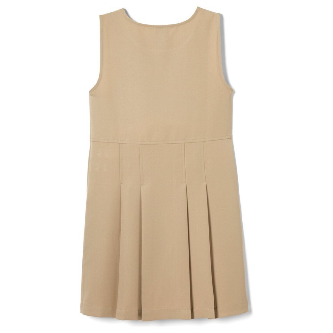 You can zip up yourself with the heart-shaped zipper pull on the front of this jumper dress. This hard-wearing style is made with Wrinkle No More fabric that stays looking smooth. Pair with a button-up or polo for great school-wear-or-anywhere style.